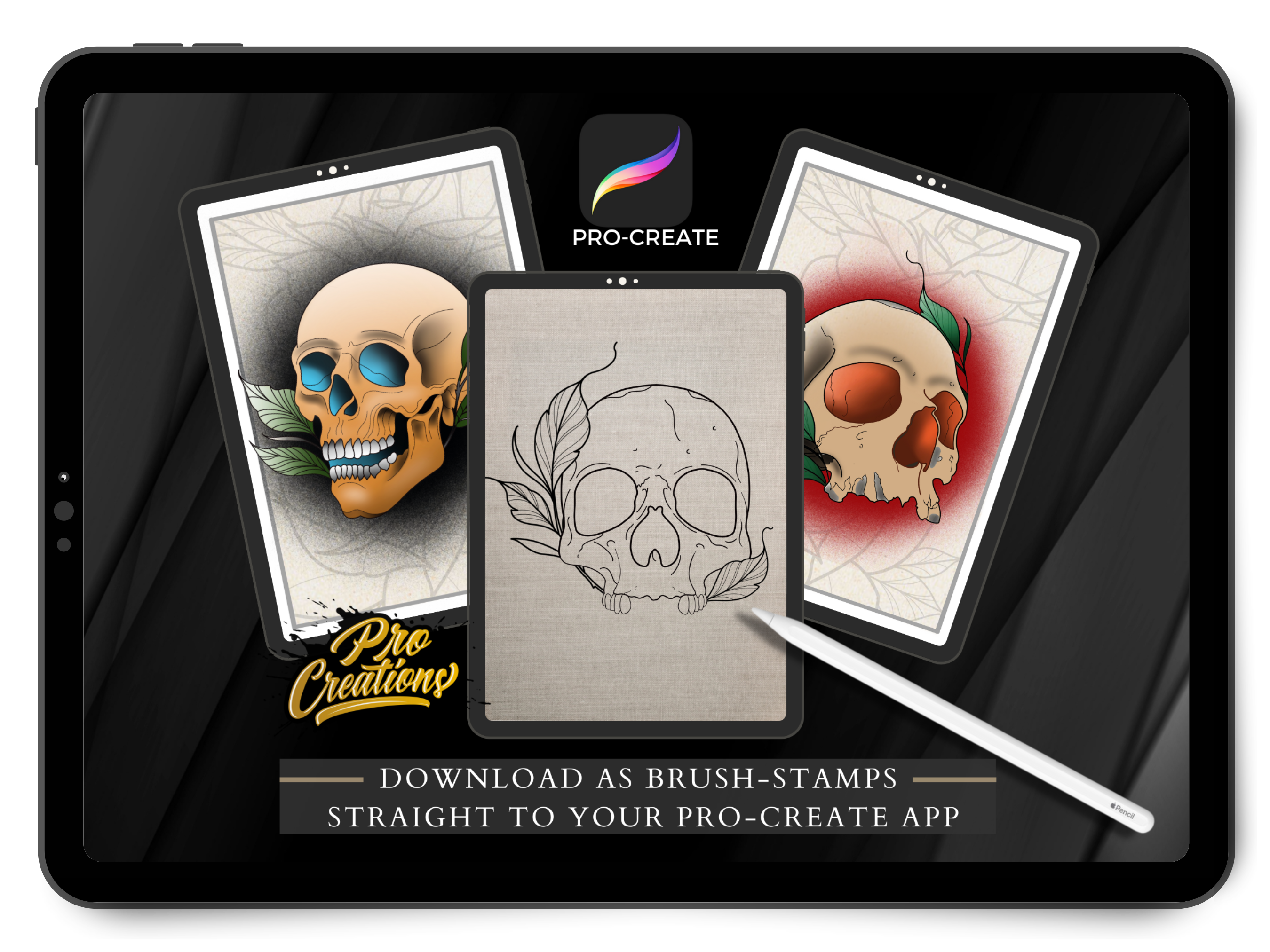 Neo Traditional Skulls Brush Set For Procreate 25